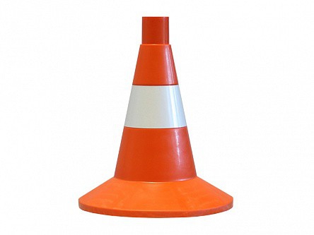 Сигнальный дорожный конус представляет собой техническое средство организации дорожного движения в форме конуса оранжевого цвета с площадкой у основания и одной световозвращающей полосой.
