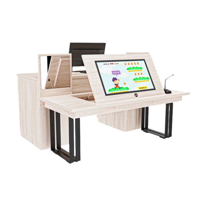 Профессиональный стол логопеда Logo Pro 21,5" с двумя рабочими местами для воспитанника и специалиста помогает стимулировать речевые функции и когнитивные навыки у детей. Это современное оборудование с сенсорным экраном и программным обеспечением для интерактивного обучения. Единственная в своем роде цифровая техника для профессиональной работы с детьми представляет комплект модулей, собранных и настроенных по заданным параметрам.