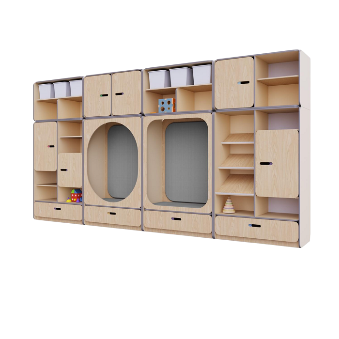 • Стенка для хранения игрушек и дидактических материалов является прекрасным решением для современных детских садов, где важны удобство, безопасность и гигиена.