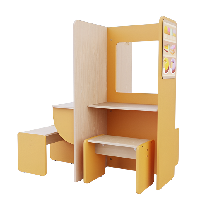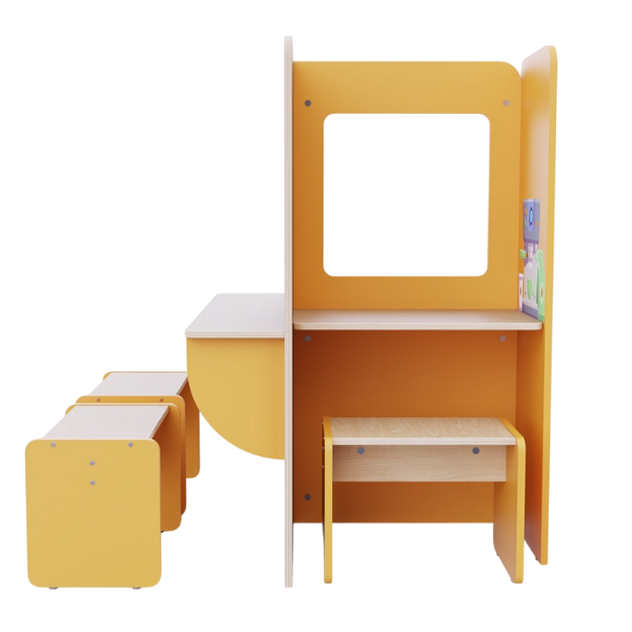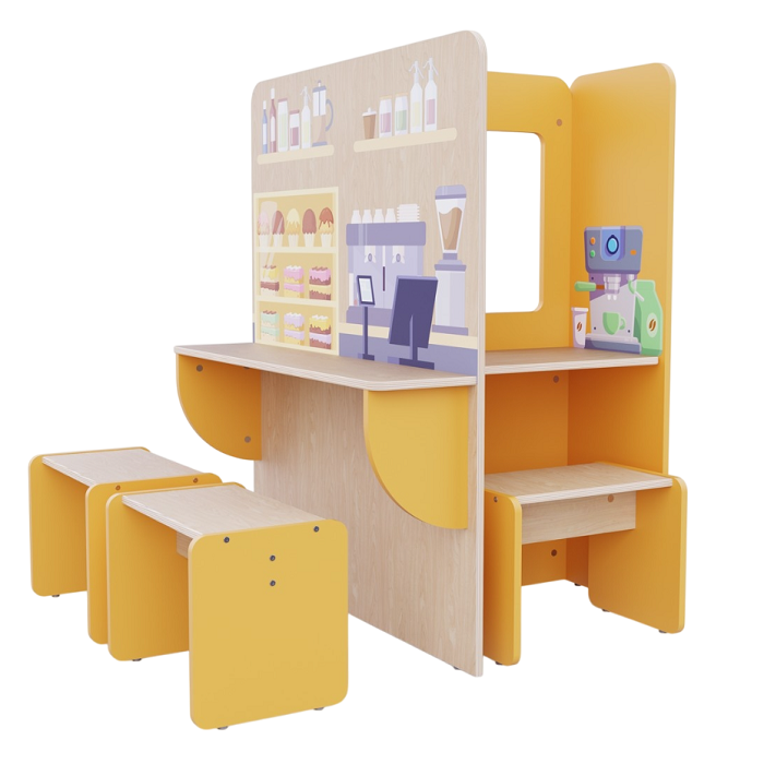 Пространство для сюжетно-ролевых игр в детских садах и дошкольных учреждениях, чтобы дети могли в приближенном к реальности пространстве попробовать себя в роли бариста, кассира и посетителя.