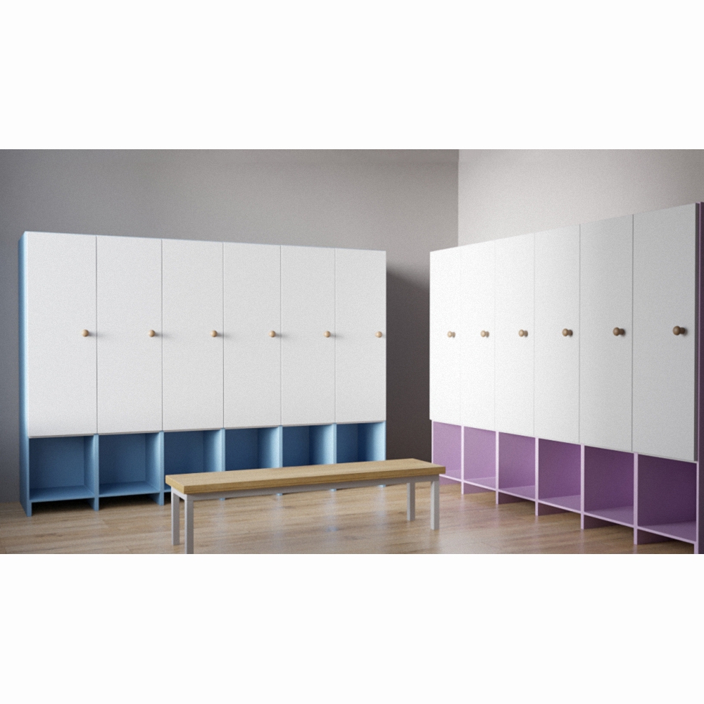 Детский гардероб «Маленькая радость» —нежные стеллажи для мальчиков и девочек разных возрастов, которые выполнены из качественных, а главное безопасных материалов. Оснащены элементами в виде крючков и полок для складывания одежды и обуви. Дети могут самостоятельно, без помощи взрослых, складывать свои вещи в шкафчик, развивая самостоятельность. Данный гардероб «Маленькая радость» выступает как специализированная мебель для детей, которая может стать прекрасным дополнением к полноценному гардеробу в интерьере детского центра, детского сада, а также подойдет для специальных школ и интернатов.