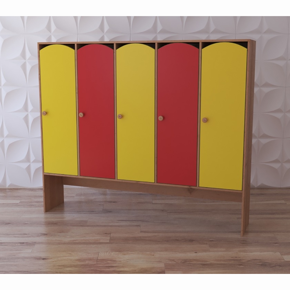 Детский шкаф представленной модели предназначен для оборудования системой для хранения уличной и сменной одежды детей в садиках и яслях, начальных и спортивных школах, бассейнах и пр. Внутри имеются полочки для головных уборов, шарфиков, перчаток и обуви; и крючки – для размещения верхней одежды.