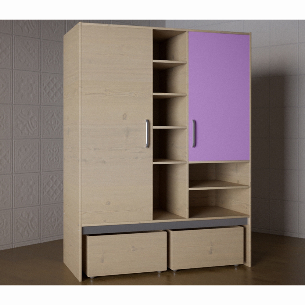 Детский шкаф выполнен в цветах, которые соответствует предпочтениям детей разного возраста.
