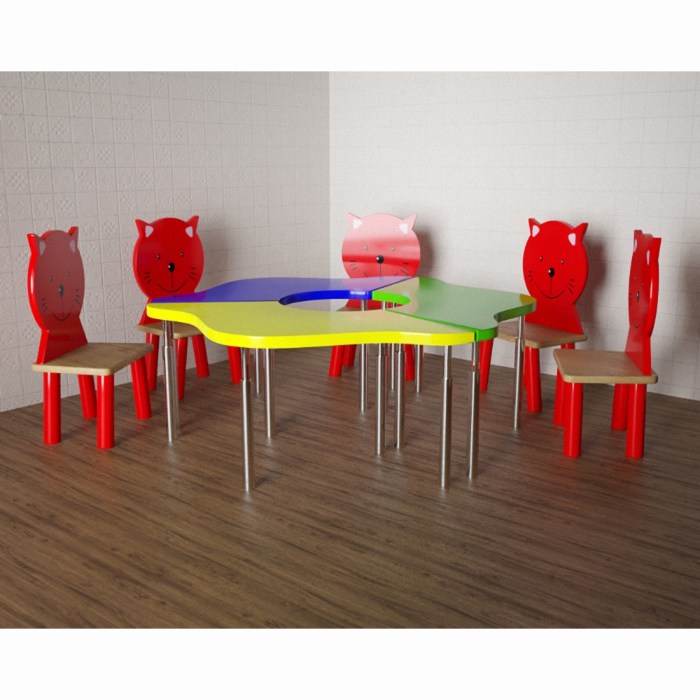 Стол имеет изящную и вычурную конструкцию, состоит из 3-х отдельных столиков синего, желтого и зеленого цветов, которые могут использоваться по отдельности, а при необходимости – сдвигаться в единую конструкцию. Каждая из частей столика имеет по 2 рабочих места. Детский стол “Трехцветик” нужен для оснащения учебными местами групп в ДОУ, коррекционных и развивающих центрах.