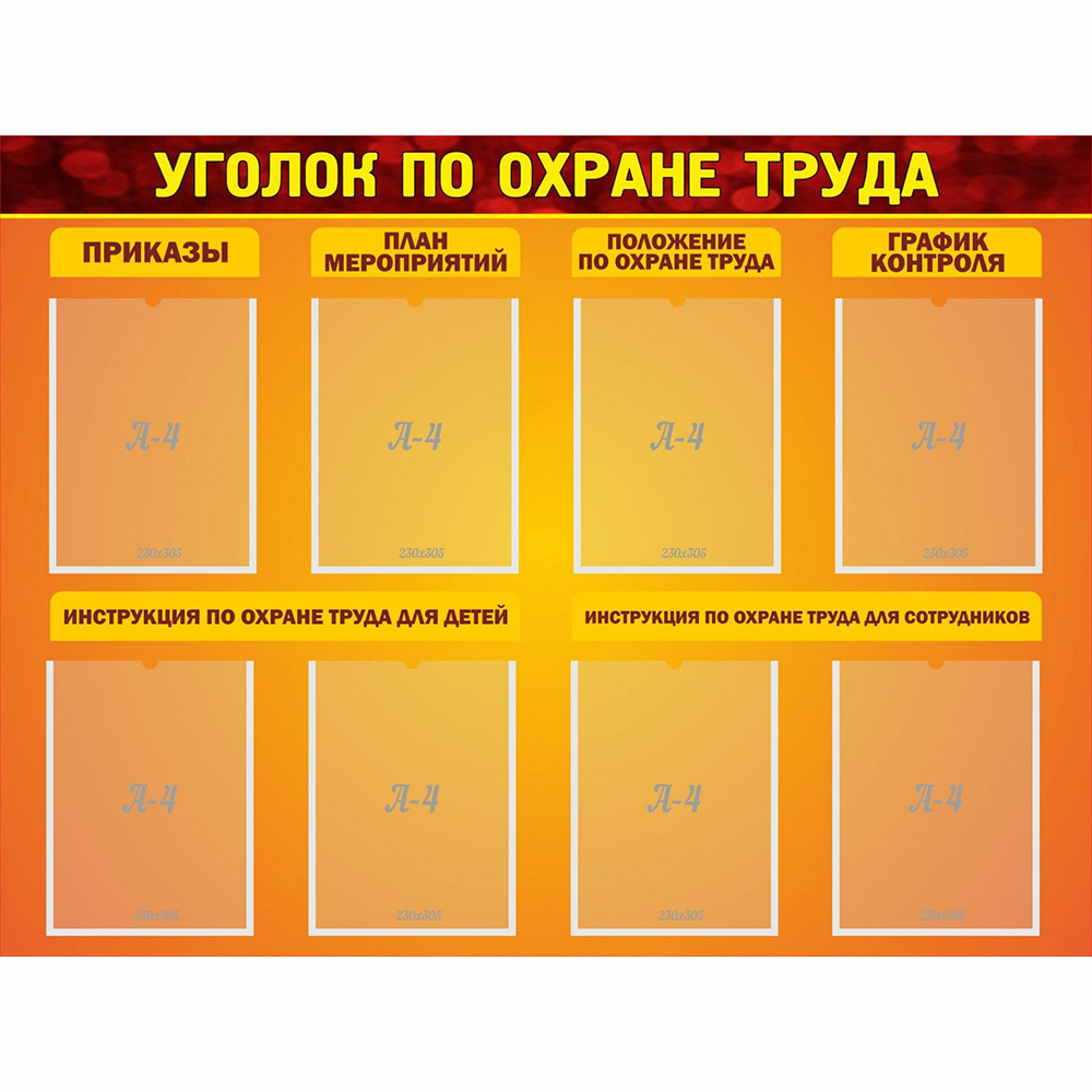 Стенд "Уголок по охране труда" с 8 карманами.