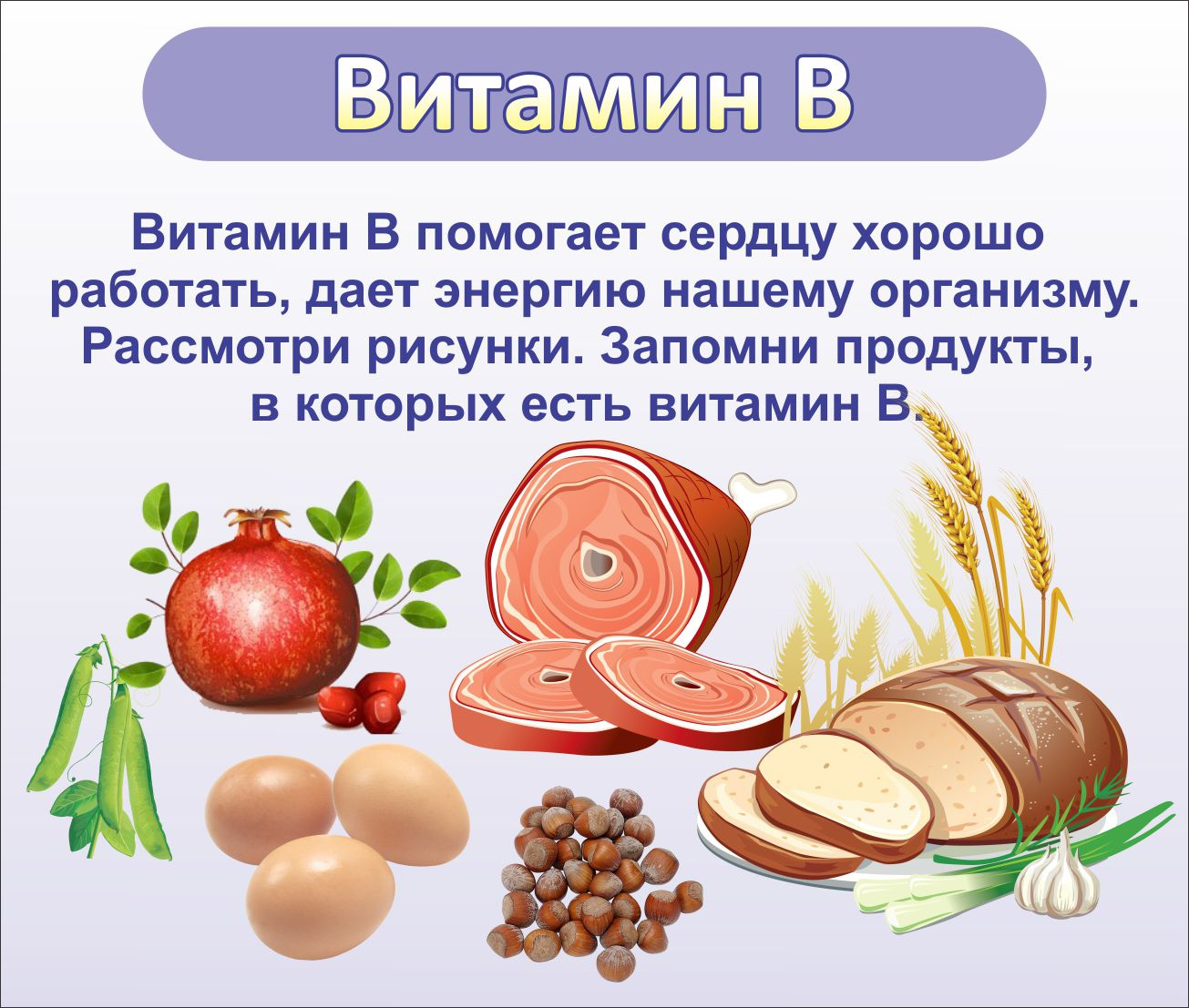 Яркий и красочный стенд, который поможет рассказать детям о важной роли витамина В для здоровья человека. Стенд имеет яркие картинки и текст, в котором скрывается описание качеств витамина и задание на закрепление материала. Стенд можно использовать на занятии в качестве наглядного пособия. Дизайн понравится детям, а воспитатели оценят его преимущества. Информация будет полезна не только детям, но и их родителям. Стенд небольшой по размеру, легкий по весу, но достаточно крепкий. Его легко транспортировать и монтировать на стену. стенд отличается яркими картинками и информационной насыщенностью.