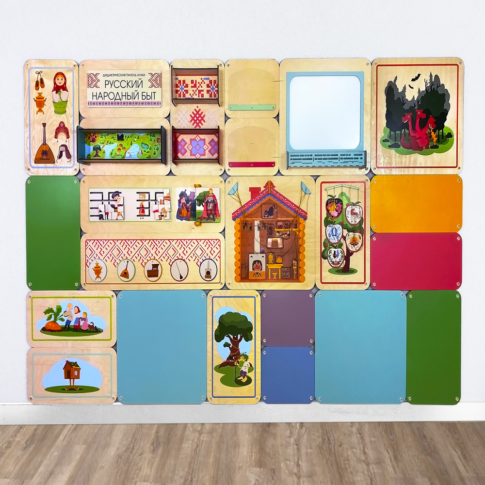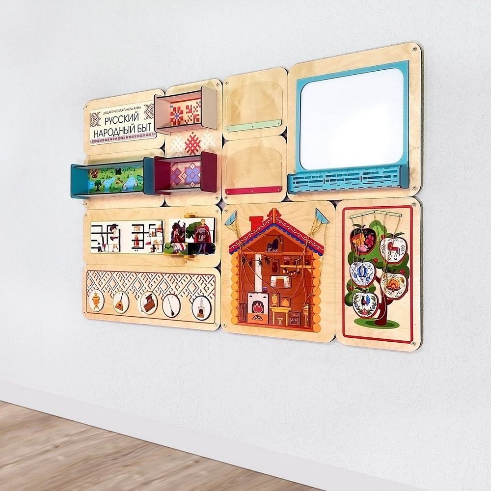 • Прочно закрепляются на стенах и не свалятся на детей, даже если они будут тянуть. Все материалы панелей безопасны для детей и сертифицированы. Малыши могут трогать, облизывать и грызть деревянные детали – их здоровью ничего не угрожает.