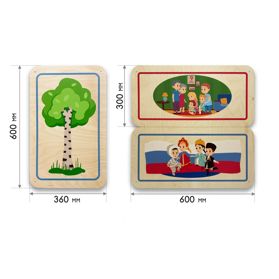Набор дополнительных модулей для комбинации с дидактическими настенными панелями. Отличное интерьерное решение для оформления помещений в едином стиле.