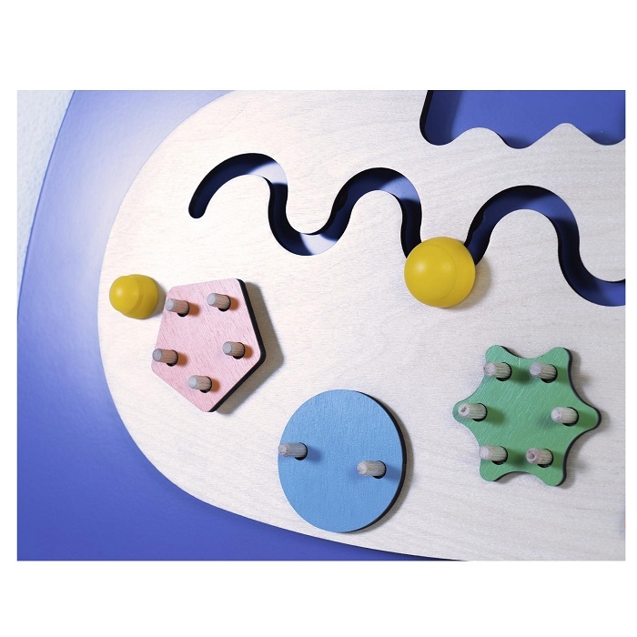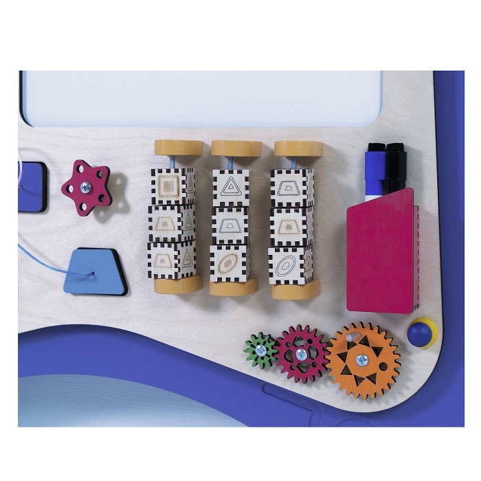 Бизиборд изготовлен из МДФ с трехслойным покрытием безопасной краской на водной основе.