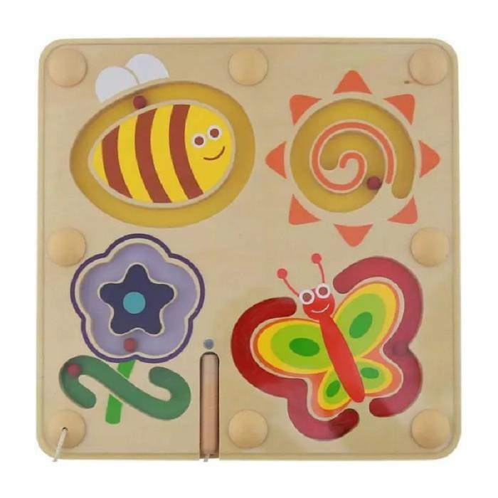 Магнитный лабиринт с изображением насекомых, способствующий развитию моторики. Детям нужно будет держать магнитную ручку, чтобы перемещать бусины по спирали, овальному цветку и дорожкам в форме бабочки.