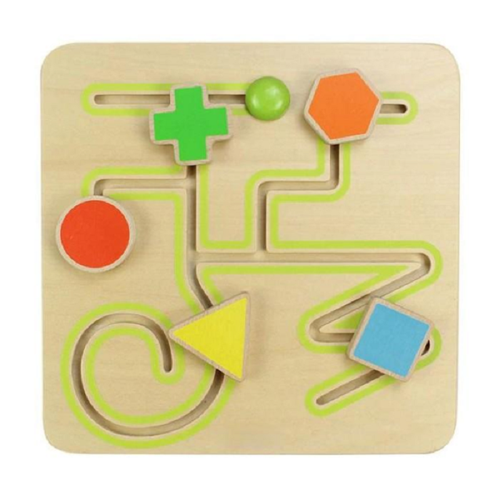 Панель представлена в виде лабиринта с цветными передвигающимися геометрическими фигурами (треугольник, квадрат, круг, крест, шестиугольник) по различным линиям.