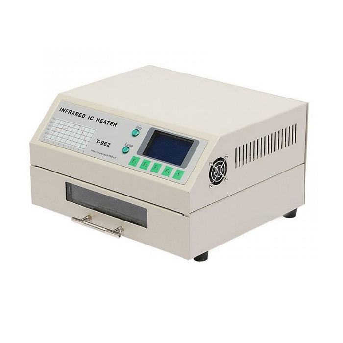 Инфракрасная печь управляется микропроцессором и использует мощный инфракрасный нагреватель. Она служит для эффективной пайки различных SMD и BGA компонентов. С помощью данной печи возможно устранить плохое качество пайки путем полного прогрева всех компонентов BGA, производить снятие и установку BGA компонентов.