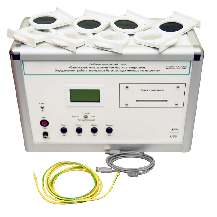 Учебно-моделирующий стенд «Взаимодействие у- частиц с веществом. Определение пробега электронов бета распада методом поглощения», предназначен для проведения лабораторных работ с учащимися по курсу ядерная физика.