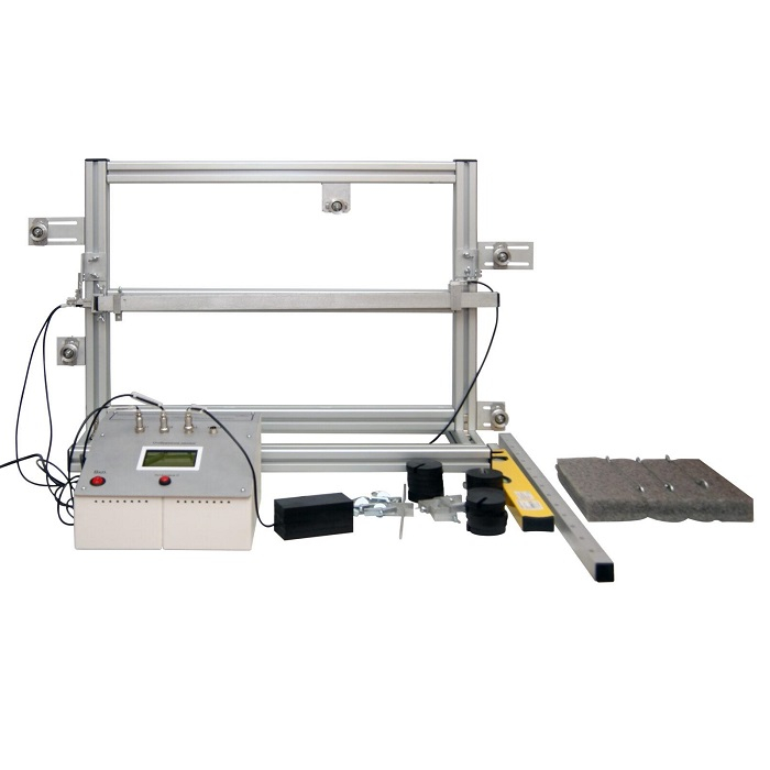 На раме закреплена система датчиков позволяющая определять реакции опор: вертикальную и горизонтальную реакции в одной опоре и вертикальную реакцию в другой опоре.