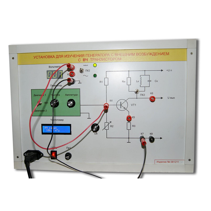 Предназначен для изучения принципов работы однокаскадных транзисторных высокочастотных усилителей мощности реализующих функции генератора с внешним возбуждением и позволяет выполнять лабораторные работы.