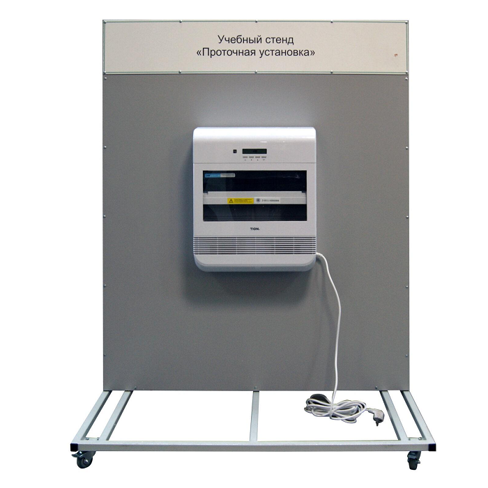 Лабораторный стенд «Проточная установка» предназначен для ознакомления с устройством, особенностями монтажа и эксплуатации проточных установок очистки воздуха.